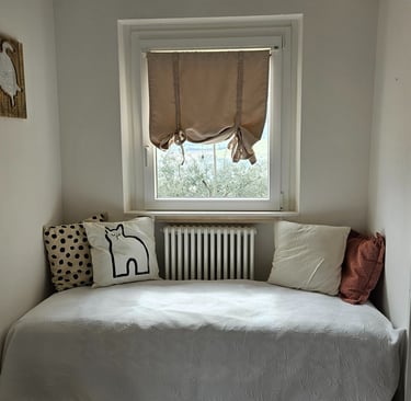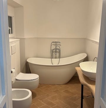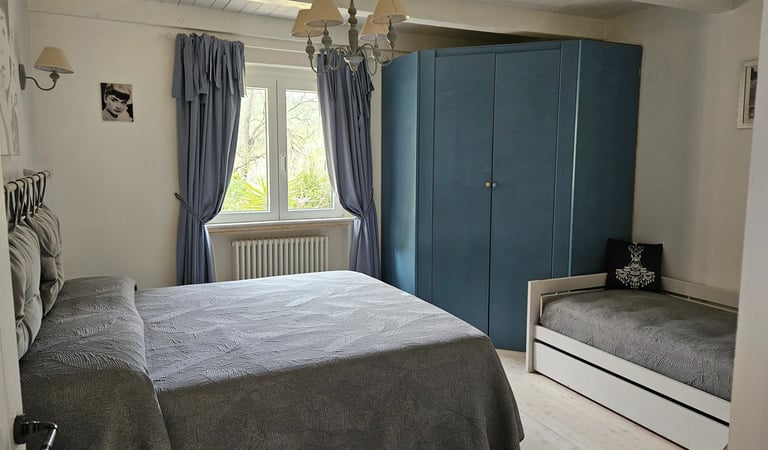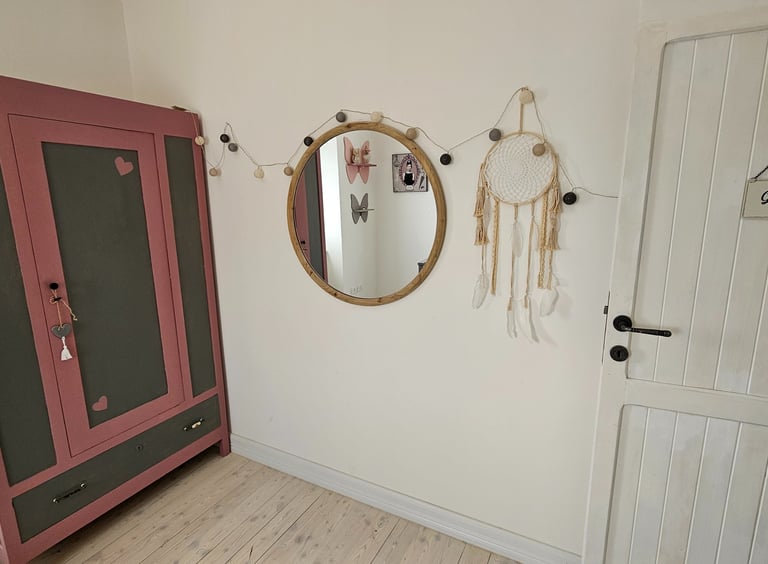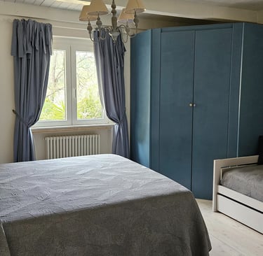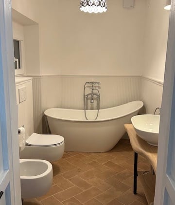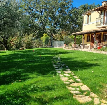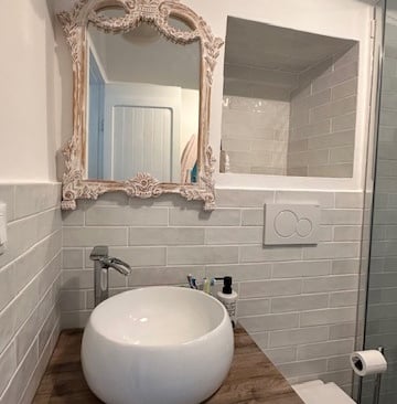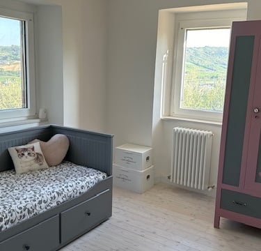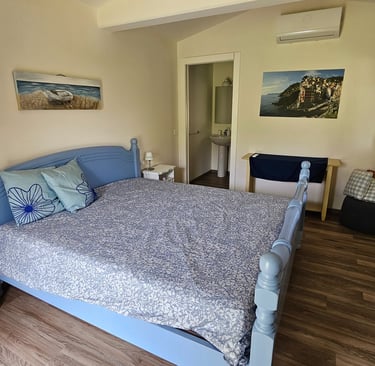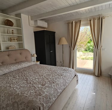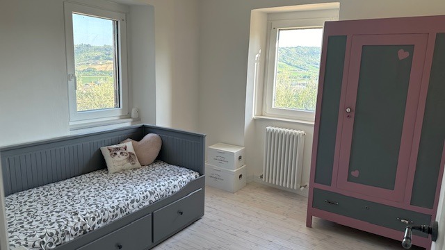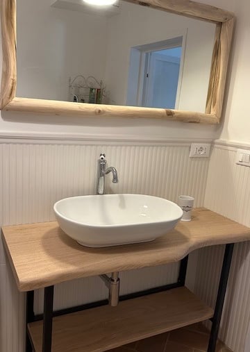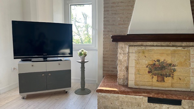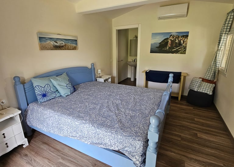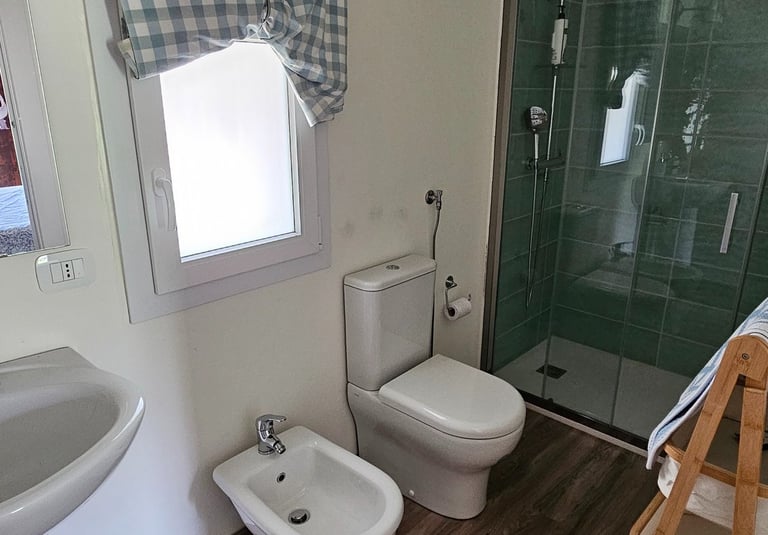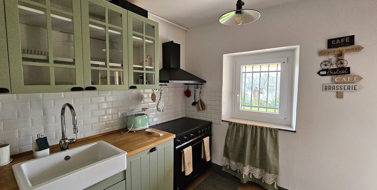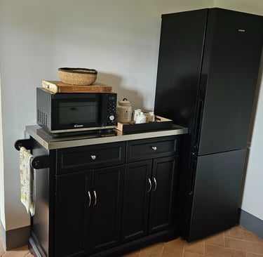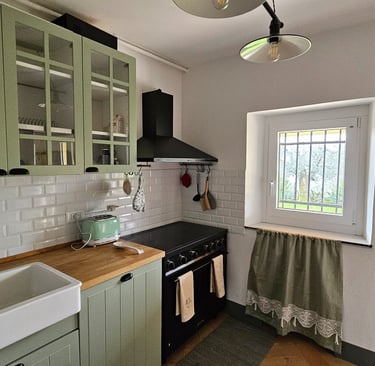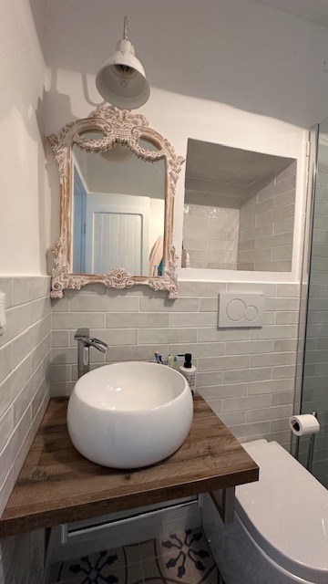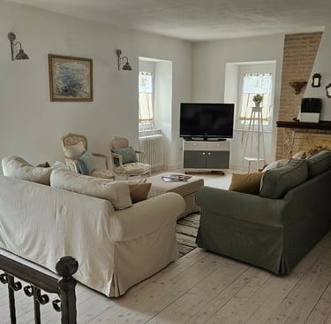 The house is divided into two levels. On the ground floor, we have a fabulous living-dining room with an accessible kitchen and a bathroom.